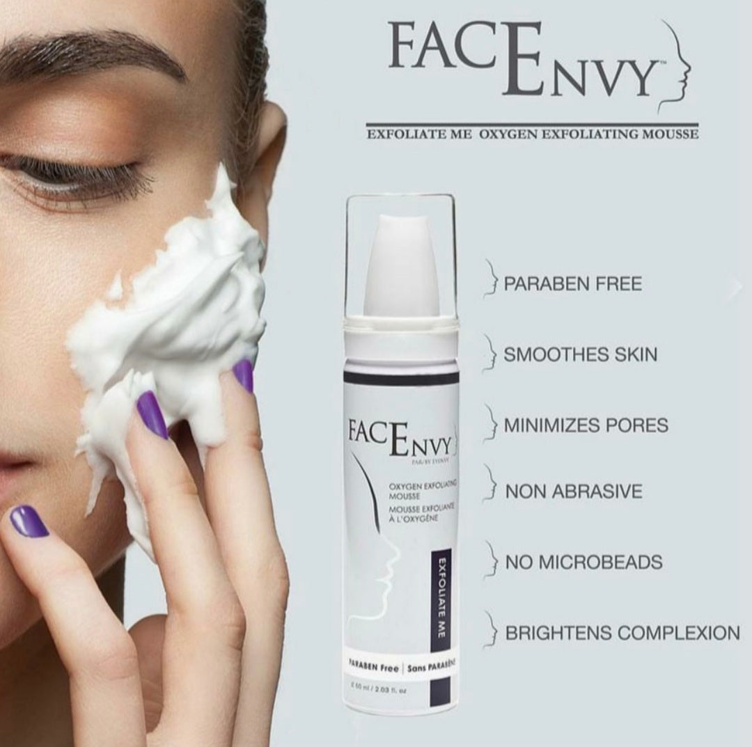 Face Envy Oxygen Exfoliating Mousse is designed with enzymes to exfoliate your skin with out any microbeads. It's extremely gentle and will brighten your complexion.